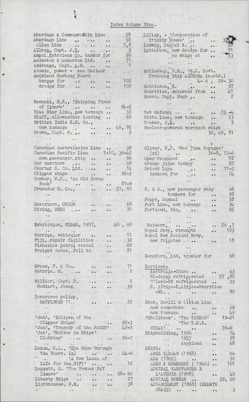 New Zealand Ship and Marine Society (2nd Sep 2022). Marine News 1957 Vol 09 Issue Index. In Website New Zealand Ship and Marine Society. Retrieved 21st Jan 2026 17:08, from https://nzshipmarine.recollect.co.nz/nodes/view/1546