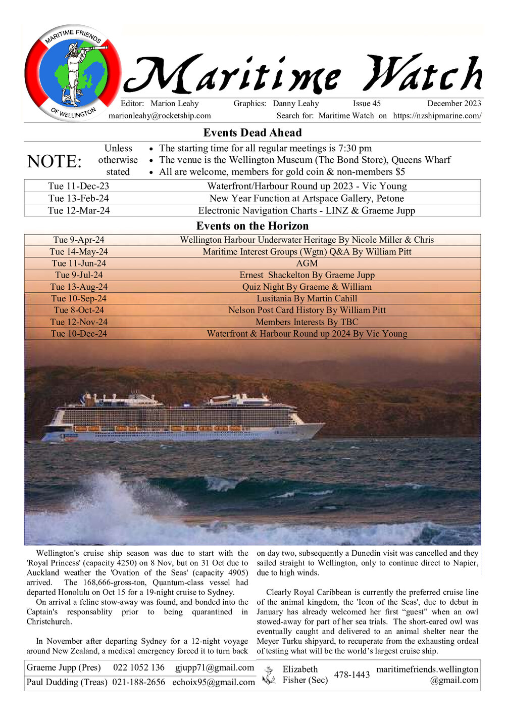 New Zealand Ship and Marine Society (2nd Feb 2026). Maritime Watch - Issue 45. In Website New Zealand Ship and Marine Society. Retrieved 18th Apr 2026 14:24, from https://nzshipmarine.recollect.co.nz/nodes/view/2982