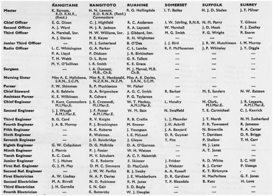 Fleet List 1967 - Rangitane, Rangitoto, Ruahine, Somerset, Suffolk, Surrey